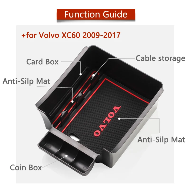 Armrest Box Storage Stowing Tidying for VOLVO XC60 2009 2010 2011 2012 2013 2014 2015 2016 2017 Car