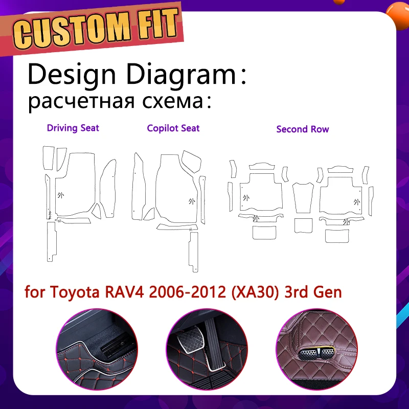 US $US $39.98Custom Leather Car Floor Mats for Toyota RAV4 RAV 4 XA30 2006~2012 XA 30 5Seats Foot Pad Carpet Acc